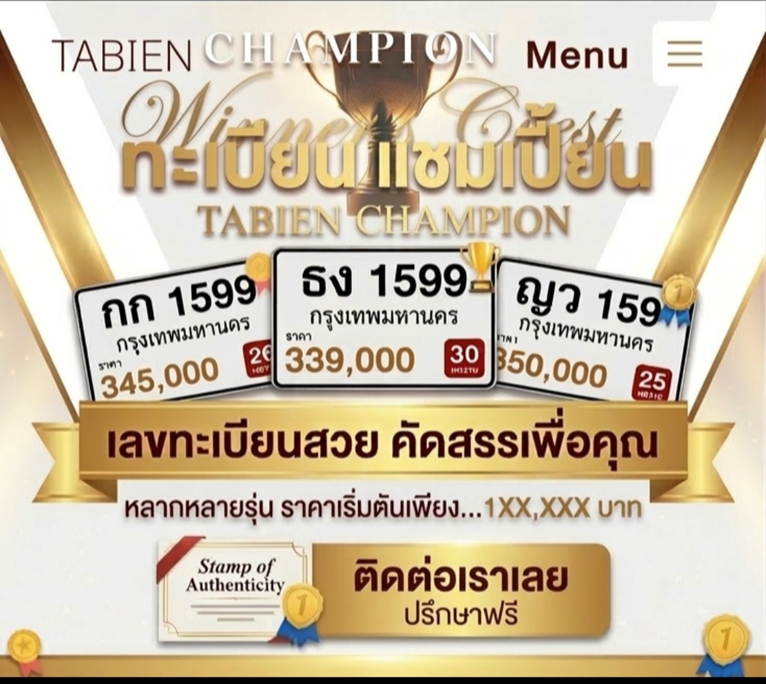 ที่ Tabien Champion เราคือตัวจริงเรื่อง #เลขทะเบียนรถยนต์ ที่คัดสรรมาเพื่อคุณโดยเฉพาะ ไม่ว่าจะเป็นเลขศาสตร์มงคล เลขสวยจำง่าย หรือเลขโฟร์/เลขหาบ เรามีครบ!